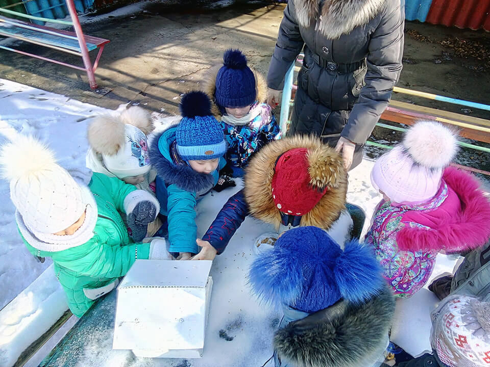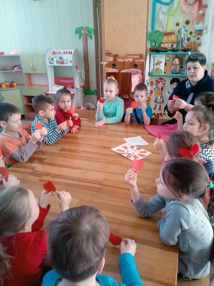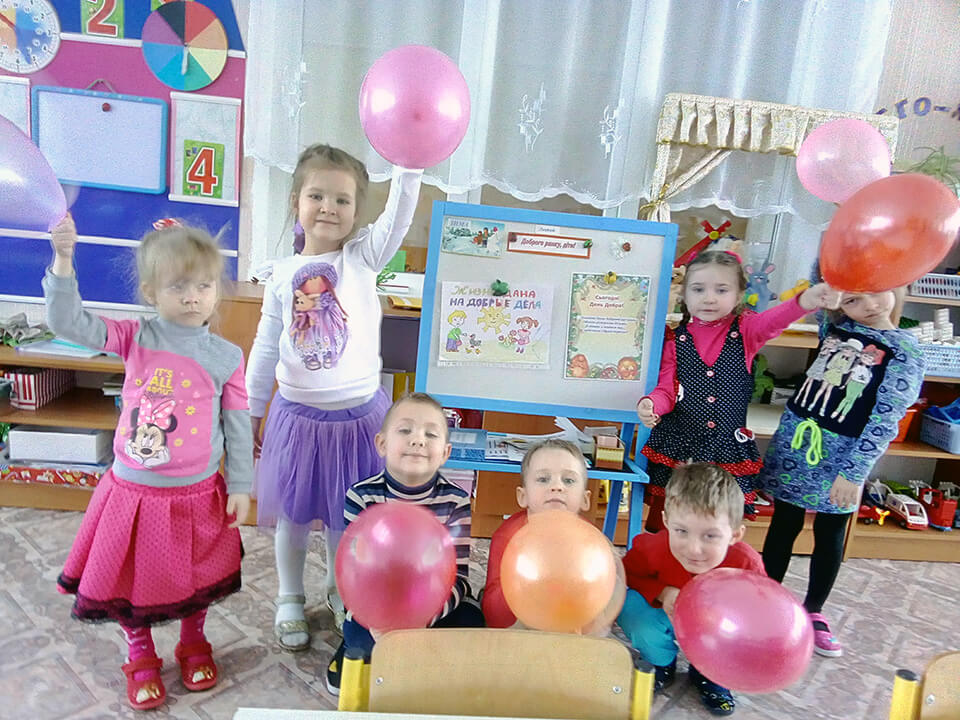 Вранці вихователі повідомили дітворі, що цей день особливий, а от чому, діти дізнаються, коли будуть робити щось хороше для інших, говорити добрі, теплі слова. На ранковій зустрічі в дружньому колі діти розмірковували над питаннями, що таке доброта, чому важливо бути добрими, які емоції дарують добрі вчинки і слова … Граючи в ігри «Добре – погано», «Скажи приємне слово», «Чарівні окуляри», діти відчули себе творцями доброти. Вони, ніби маленькі чарівники, дарували один одному тепло, ласку, добро, щирість … Педагоги групи «Бджілка» разом з дітьми виготовили сердечка і вітали своїх товаришів, малят з інших груп. Педагоги групи «Веселка», «Бджілка», «Усмішка», «Пізнайки» разом з дітьми годували пташок , доглядали за квітами та городом на вікні.