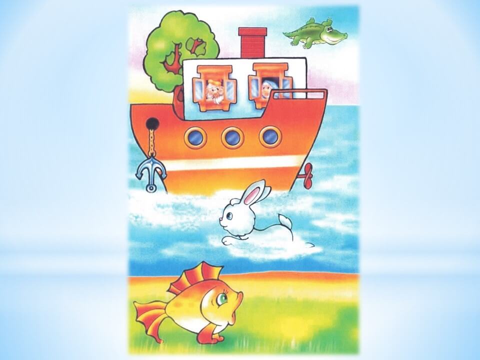 - Діти, а погляньте, хто на нас вже он чекає – та це ж Маша і Ведмідь з відомого вам мультфільму. Ви знаєте, що ця дівчинка має дуже гарну уяву і любить придумувати різні неіснуючі історії, і для вас вона приготувала ось таке завдання – нещодавно Маша з Ведмедиком ходили на прогулянку. Вони взяли з собою альбом та фарби. Поки Ведмідь малював, Маша гралась на травичці, а потім, коли Ведмедик пішов рибалити, то Маша вирішила пожартувати і подомальовувала до Ведмедикових робіт дещо своє. Подивіться уважно на малюнки і скажіть, що ж наплутала Маша, коли малювала? Якщо виконаєте це завдання правильно – отримаєте ще один ключ.