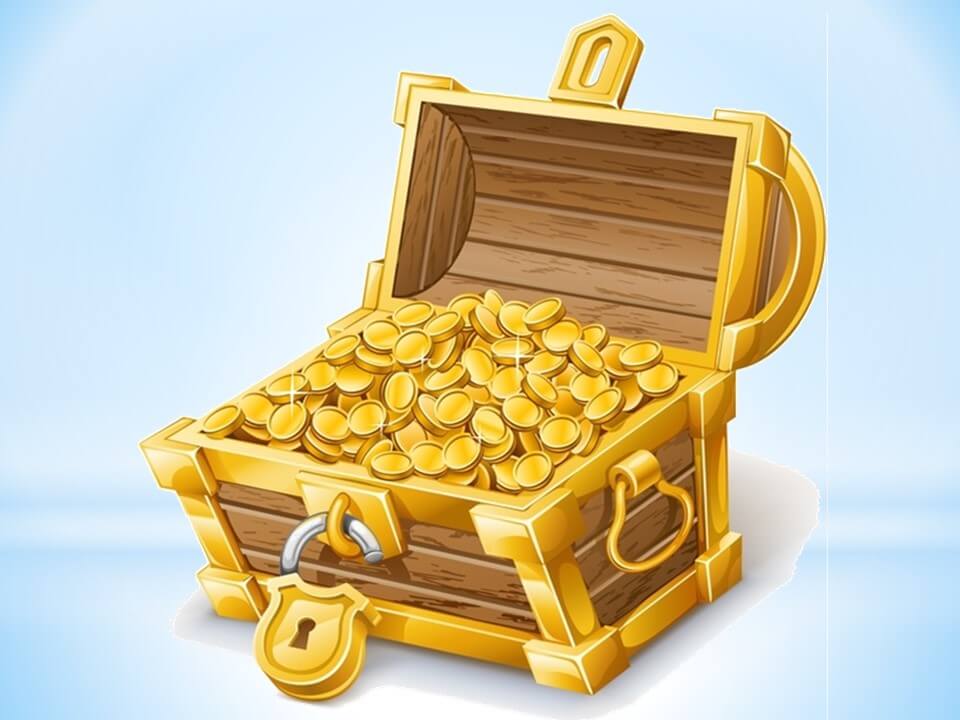 - Діти, замок відчинився, і в скарбниці ми бачимо ось таку чарівну скриньку. Хочете побачити, що в ній? (Відкривають скриньку і бачать, що в ній знаходяться шоколадні монети – скарби. В кінці заняття логопед роздає дітям монети).