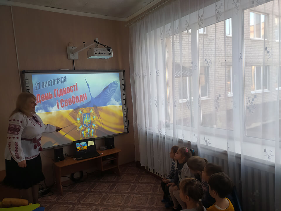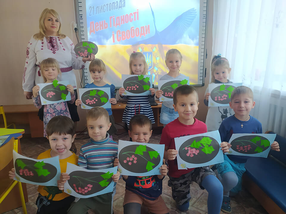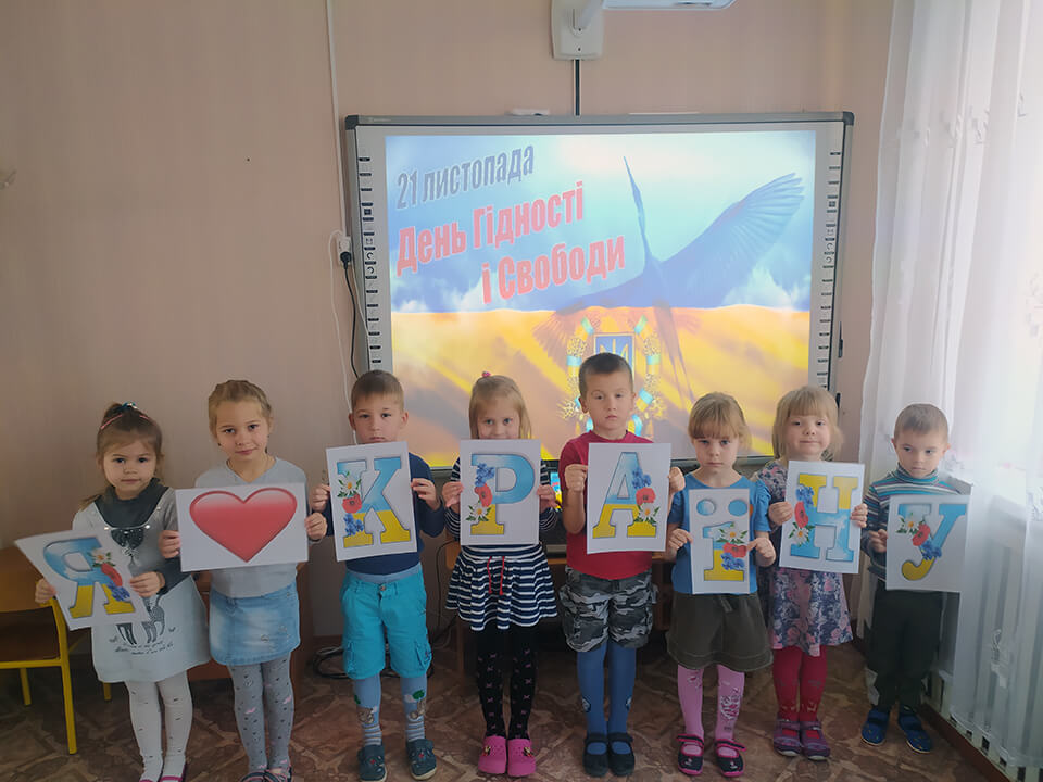 В рамках відзначення в Україні «Дня гідності і свободи» в закладі дошкільної освіти № 2 «Ромашка» 20.11.2020р. були проведені тематичні заняття патріотичного спрямування «Я маленький українець і цим пишаюсь», інтегроване заняття «Країна щасливих дітей», «Долоньки свободи».